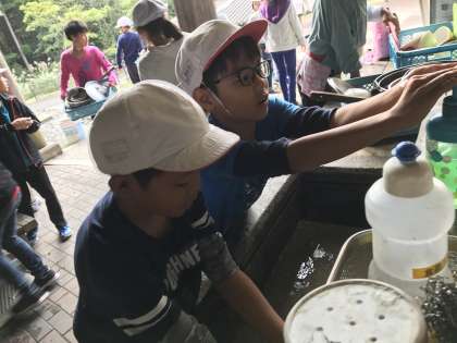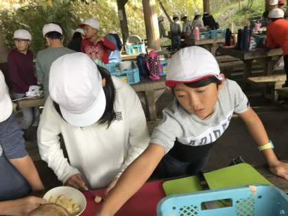 野菜や米を扱う人は,きちんと手洗いをしてから活動開始です。お米のとぎ方や野菜の切り方は,昨年より上手になっているようです。