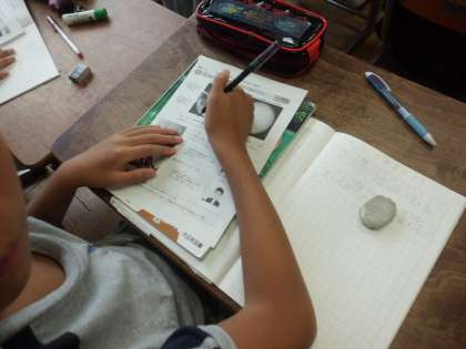 理科「月と太陽」では,今まで学習してきたことをふり返りました。プリントの問題に取り組むことで,テスト対策もばっちり!