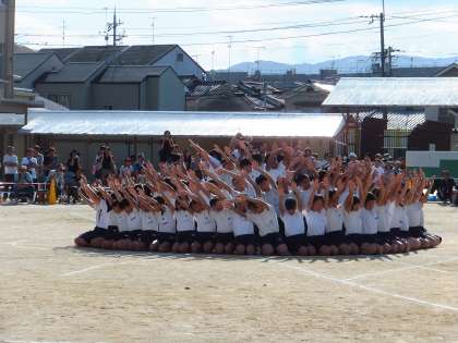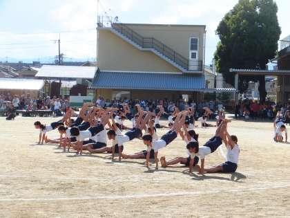 運動会での6年生の組体操,いかがだったでしょうか。6年担任としては,大変すばらしい出来栄えだったと感じております。練習では,技がなかなか成功せず,放課後毎日残って練習する子どもや,家でも練習した子どももいました。また,土台となり懸命に上の人を支え続けた人,不安定な足場で高い所にあがるといった恐怖心と戦った人,それぞれの頑張りがあり,成功を収めることができたのだと思います。練習の時は,天候にも恵まれず,運動場でしっかりと練習ができなかったのに,本番であの素晴らしい演技ができた子ども達。この学年の子ども達の底力を改めて感じることができました。今回の成功をまたこれからの活動に繋げていきたいと思っています。