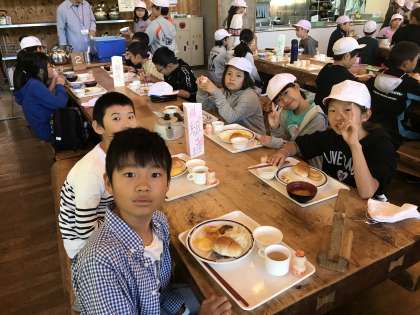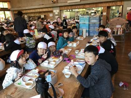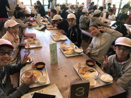 2日目の朝食です。みんな山登りに備えて,しっかり食べています。