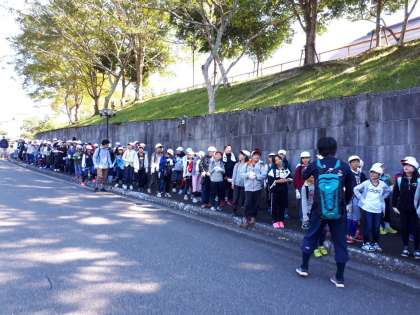 山登りに出発しました。これから山道に入りますが,みんなで励まし合って登り切りたいと思います。