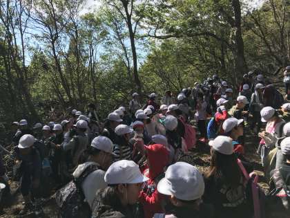 天気がいいので,気持ちよく山道を登っています。現在,寺山峠に到着し,休憩しています。