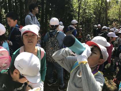 だんだん山道も細くなってきました。山頂が近づいているようです。こまめに水分を取りながら,がんばって登ります。