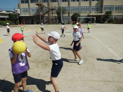 体育の授業では,エンドボールが始まりました。