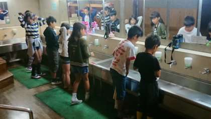 おはようございます。3日目の朝を迎えました。昨晩は早めに就寝したおかげで,疲れも少しとれたようです。子ども達は,てきぱきと身支度を整え,朝の集いで今日のスケジュールを確認しました。
