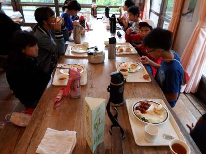 3日目の朝食です。3日目にもなると手慣れたもので,指示がなくとも自分たちで準備や片付けができるようになりました。