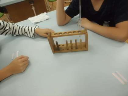 理科「水溶液の性質」では,リトマス紙を使って液性を区別する実験をしました。色が変わることに大興奮の子どもたちでした。