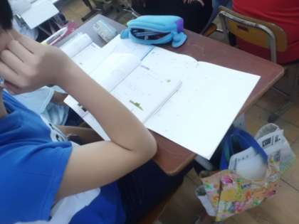 算数科「速さ」の単元のまとめ問題に挑戦。単元の感想を書くことで,単元で学んできたことを改めてふり返ることができました。
