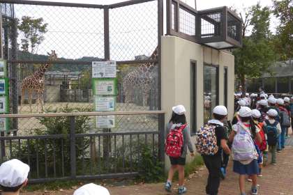 動物たちの様子を,みんなで見て歩きました。トラの大きさにびっくりしたり,寝ているライオンにがっかりしたり。キリンの首は,びっくりするほど長かったです。生で見る動物は,やっぱり迫力があったり,かわいさが伝わったりしました。