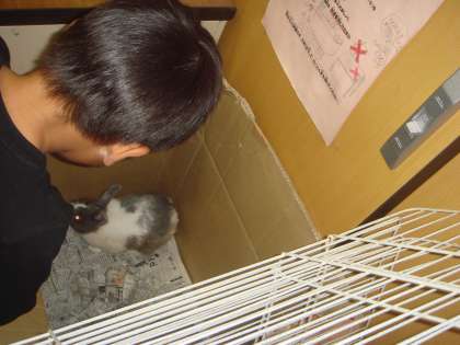 広いウサギ小屋で観察するより,近くでウサギさんに触れることができ,
