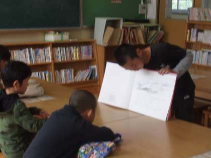 読書月間でどんなイベントがあるか,各クラスへお知らせに行きました。そのためか,中間休みや昼休みに,図書館へたくさん足を運ぶ子たちが増えてきました。