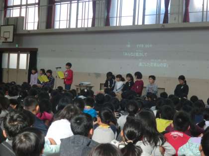 全校児童の前で伝える「吉祥院タイム」が