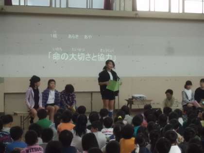 10月22日(月)に吉祥院タイムを行いました。今回の発表は5年生。山の家で学んだことを伝えてくれました。「魚つかみから命の大切さについて気づいた」「登山で仲間と協力することのよさを感じられた」など,自然体験活動でこそ味わえた内容がたくさん。教室で書いた感想には,自分たちの経験と比べたものや,これからの生活に生かしていこうとする前向きなものがたくさん見られました。