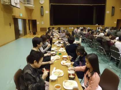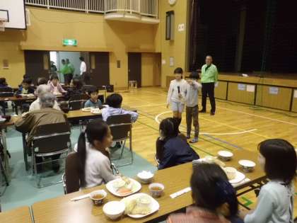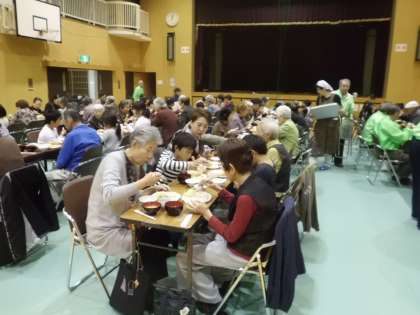 「いただきます」のあいさつをしたあとは,お年寄りの方とお話をしながら,楽しい時間を過ごしました。