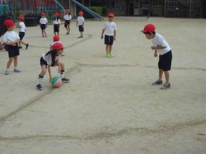 素早くころがし合って ボールを当てる姿が見られます。