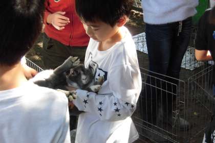 飼育委員会にお世話になり,ウサギを抱っこしたり,えさをあげたりする「飼育ふれあい体験」に,参加しました。ウサギ小屋の前には,長蛇の列。みんな,ウサギがかわいくて,わくわくしながら順番を待っていました。自分の番が来ると,大事そうに抱っこしたり,そっとキャベツを口に近づけてあげたりしていました。命のあたたかさに触れる,素敵な体験でした。