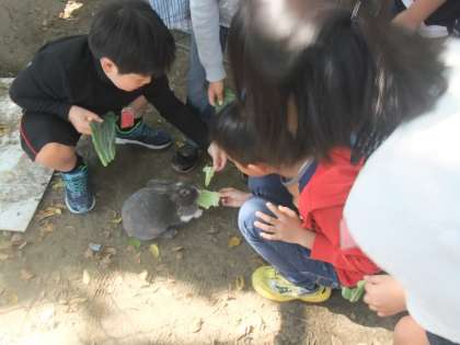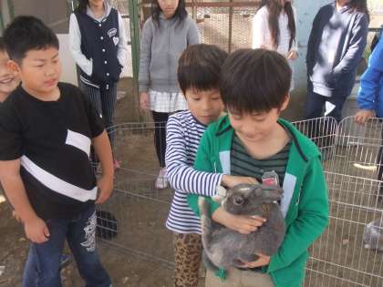 飼育委員会が企画してくれた「ふれあい体験」が中間休みにありました。普段小屋の外から見ているウサギに触れられる貴重な機会だとあって,たくさんの子どもたちが参加していました。「ウサギの抱き方が分かったよ」「ニンジンを食べているところを初めて見たよ」など,とても嬉しそうでした。飼育委員の動物をお世話したり,抱き方を優しく教えてくれたりする姿を見て,「5年生になったら飼育委員になりたいな」という声も聞かれました。