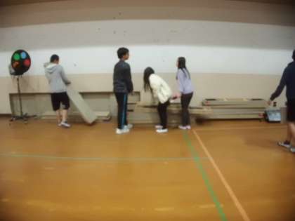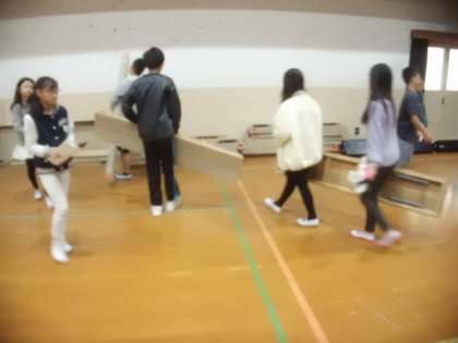 学習発表会の練習後の片付けにも勤しむ子どもたち。使った長いすも丁寧に積んでいました。
