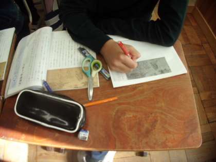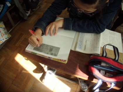 国語科「筆者のものの見方をとらえ,自分の考えをまとめよう」では,「『鳥獣戯画』を読む」の説明文を読んで,筆者がこの絵をどのように評価しているのかを読み取りました。絵にポイントを書き込むことで,たくさんの視点やほめ言葉について知ることができました。