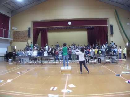 体育館にて発表会の練習をしました。最後の合奏は,先週よりも格段によくなっていました。来週の発表会が楽しみです!