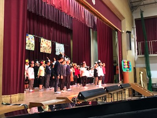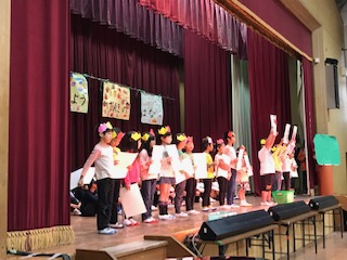 今日は初めての学習発表会。朝から子どもたちから「緊張してきた」「ドキドキする〜!」などの言葉が聞かれましたが,舞台の上で堂々と発表することができました。体育館の後ろまで聞こえる大きな声で言葉を言う,言葉に気をつけてきれいな声で歌う,などのめあてをもち,どの子どもも頑張りました。おうちの方にも日々励ましの声かけをしていただいたことと思います。ありがとうございました。