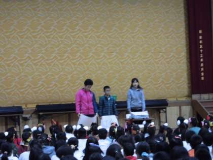 11月14日(水)は学習発表会。はじめの言葉の担当をした代表委員の子どもたちは,とても元気な声で言葉を伝えられました。おかげで,発表会のいいスタートが切れました。
