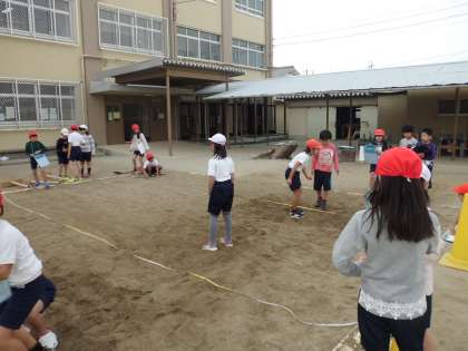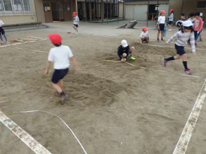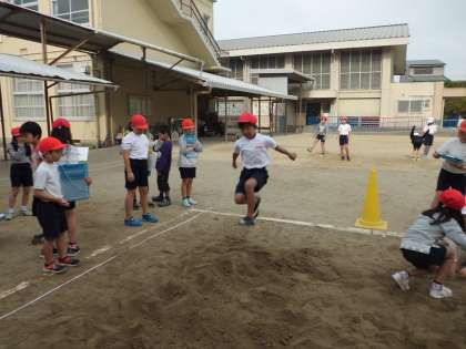 自分に合った助走距離や踏み切り足を決めて,遠くへジャンプできるように頑張っています。
