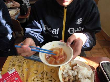今月の新メニューは「ふろふき大根 ゆずみそ」。さっぱりした味付けに,子どもたちのお箸も進みます!