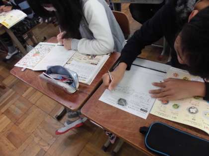 家庭科「まかせてね 今日の食事」では,前回学習した工夫を生かして,1食分の献立を考えました。栄養のバランスが取れているか,食材を表に分けることで,確かめることができました。