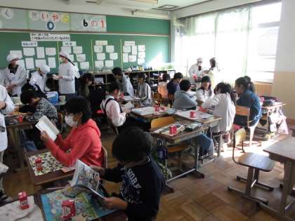 給食の準備時間の風景です。みんなきちんと座って待っています。さすが6年生!