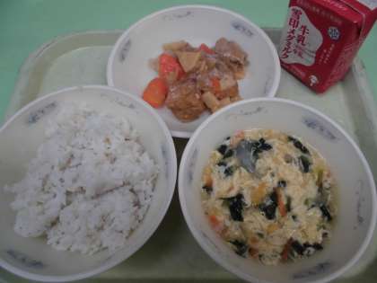 中華コーンスープは,たくさんの野菜が入っていて,彩りが良かったです。また,とろみがあり飲みやすかったです。児童は,「卵がフワフワでおいしかった」「コーンが甘くておいしかった」などの声を聞かせてくれました。