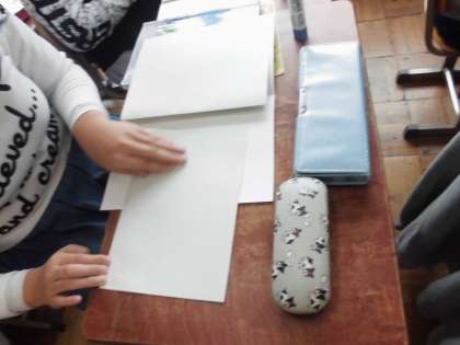 体育科「とび箱」の学習カードを作りました。丁寧に折ってのりで貼りつけ,本型のカードを作成しました。