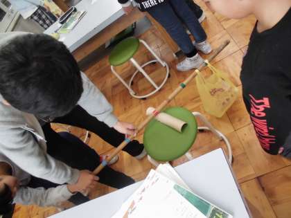 理科「てこのはたらき」では,てこを使って物を持ち上げる実験をしました。力点や支店,作用点の位置を変えることで,手ごたえが変わることに気付くことができました。