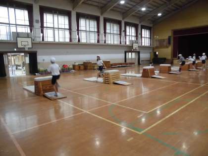 体育「とび箱」では,最初に技調べをしました。どの技ができるか確かめて,さっそくねらい1のめあてを考え,取り組んでいきました。