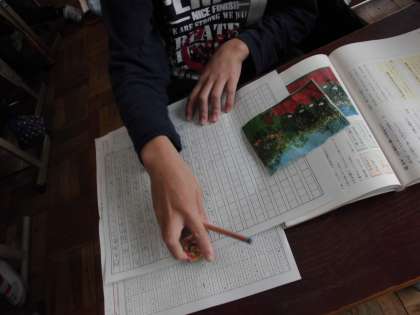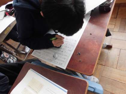 国語科「読み取ったことや感じたことを表現しよう」では,絵を見て読み取ったことや感じたことを文章に書き表しました。言葉のチェックシートや教科書にある「言葉のたから箱」を使って,ふさわしい言葉を探しながら書き進めていきました。