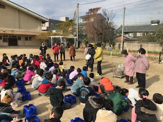 今日はとても寒い日でしたが,朝から女性会の方に来ていただいて,チューリップの球根を植えました。自分の植木鉢と鉄棒の北側にある学年花壇に,一人二つずつ植えました。いつ芽が出るのかな,何色のチューリップの花が咲くのかな。楽しみですね。これから,みんなでお世話をしましょうね!