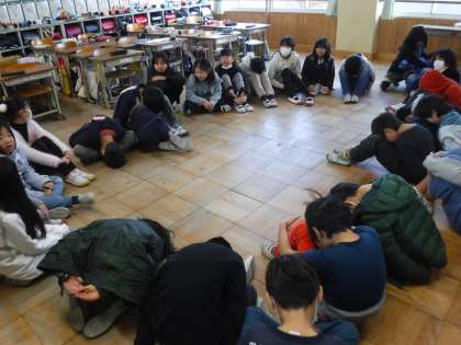 今日の休み時間は,みんな遊び。運動場が使えなかったため,教室でハンカチ落としをしました。クラスみんなで楽しそうに遊ぶ様子が見られました。