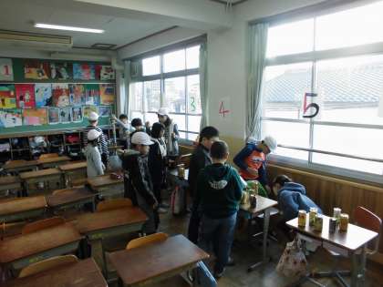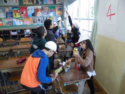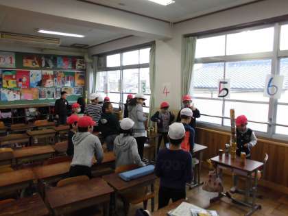 12月14日の1・2校時でたてわりゲーム大会をしました。6年1組の教室では「あきかんつみ」を実施。6年生が中心となって,お店番の子どもたちが自分のおしごとを全うしていました。みんなとても楽しそうな表情が印象的でした。
