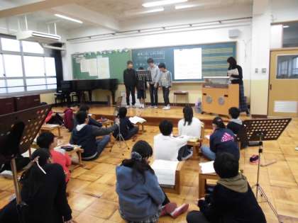 音楽科「詩と音楽を味わおう」では,グループで「ふるさと」の発表をしました。気をつけるところを意識した発表は,どのグループも素晴らしいものになっていました。