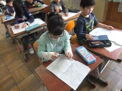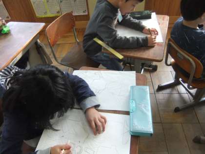 「縄跳び」をテーマに,いきいきと跳んでいる様子が出るように下描きしました。