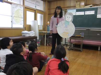 1月の身体計測の日に,風邪予防について保健室で話を聞きました。