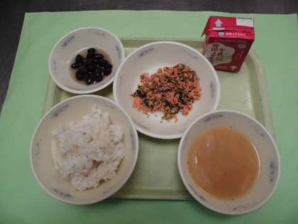 黒豆は,お正月の行事献立でした。「長寿・健康」などの意味があります。「お正月の時も食べた」「甘くておいしい」など,お正月の事を思い出しながら食べている子もいました。