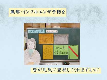 学校では,インフルエンザや風邪対策として,こまめな換気,しっかりと手洗い・うがい,そしてマスクで予防を呼びかけています。
