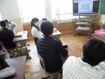 イングリッシュシャワーでは,グループでナンバーゲームに挑戦。順番に1〜60までの数字を言っていき,早く終わったグループの勝ちです。分からない数字が出てきたときは,グループのメンバーに教わりながら,進めていくことができました。