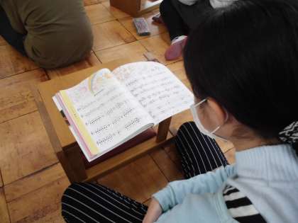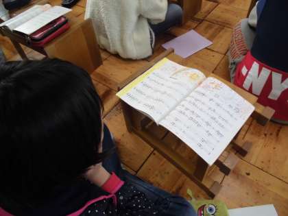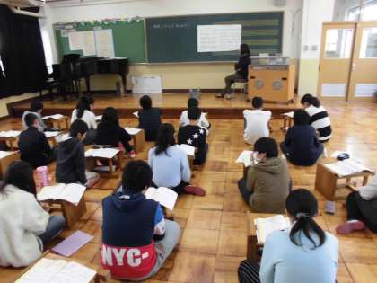 音楽科では「旅立ちの日に」の範唱を聴いて,どこが盛り上がりかを考えました。「歌詞からも盛り上がるが分かりますよ」と,高井先生の言葉に納得する子どもたちでした。