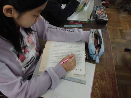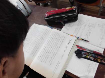 国語科「伝統文化を楽しもう」では狂言の「柿山伏」について知るために,「『柿山伏』について」という文章を読みました。狂言そのものが持つ面白さについても理解することができたようです。