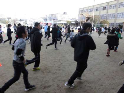 1月9日(水)より,中間休みに全校ランニングをしています。6年生の子どもたちは一番大きいコースですが,それでも力いっぱい走っています。さすがです!