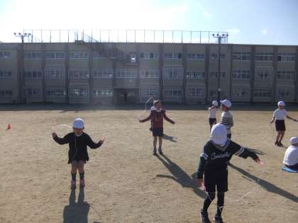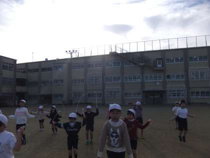 1年生でも練習した前跳び,後ろ跳び,かけ足跳びなどは,得意そうに跳んでいる姿が見られました。リズムよく止まらずに続けて跳べるように練習していきます。