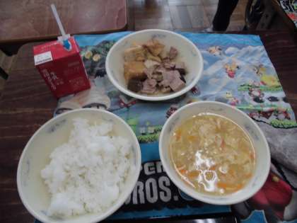 1月17日(木)の給食には,なまぶしが出ました。なまぶしは右手前,厚揚げは左奥という細かな配膳の仕方にまで気を配っているのは,とても立派でした。