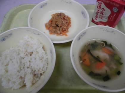 すいとんは,けずりぶしでとった出汁の味がしっかりでていました。すいとんは小麦粉だけでなく片栗粉も混ぜて作っているので,モチモチとした食感でした。児童からは「モチモチでおいしかった」「食べやすい大きさだった」という声を聞かせてくれました。